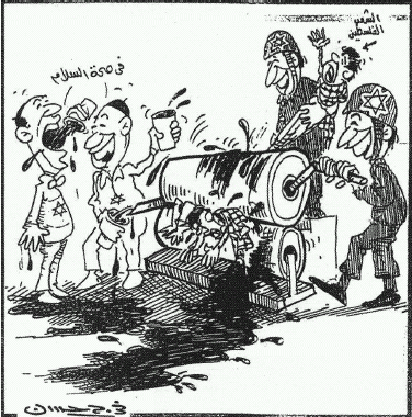 2. Sulla stampa israeliana non si vede nulla del genere sugli Arabi. E’vero. E’ vero anche che sulla stampa araba, anche dei Paesi “moderati”, si vedono spessissimo vignette come quella che ho riportato qui. Vengono presentate come satira. Balauru ha ragione nel dire che vignette del genere spingono ad odiare gli Ebrei in quanto Ebrei. Io penso che questo tipo di satira sia abominevole e da rifiutare. Credo però che sia satira “originaria”.