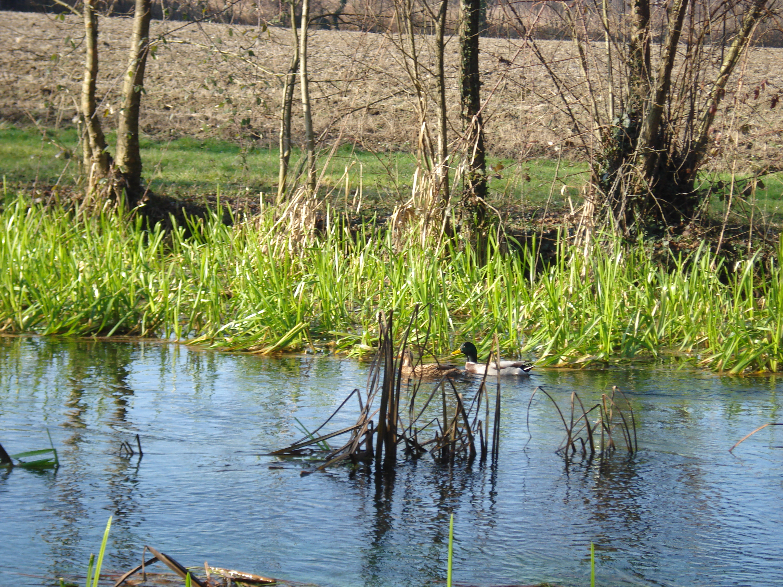 L’occhio cacciatore segue facilmente coppie di germani in placida navigazione sottoriva.