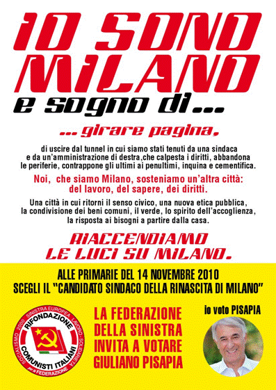 Ed ecco che il candidato della Sinistra per la carica di sindaco di Milano sarà, grazie alle primarie, Giuliano Pisapia. Giurista di vaglia, uomo senza macchie, comunista.