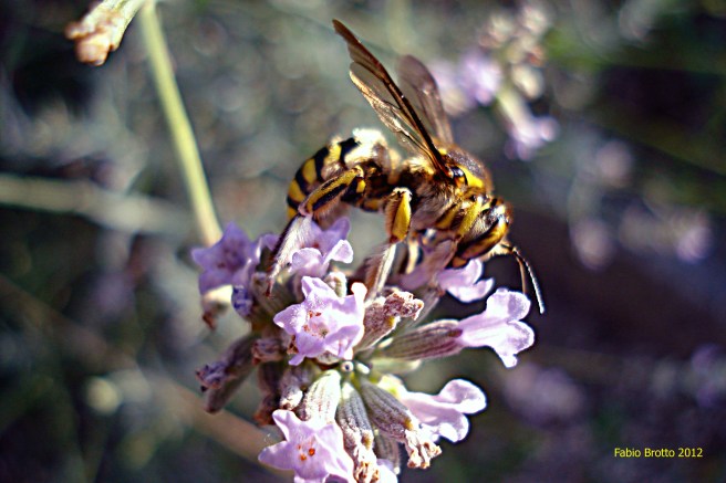 Cacce sottili nel giardino di casa: sui fiori di lavanda una piccola vespa (una dolichovespula di un qualche tipo, penso).