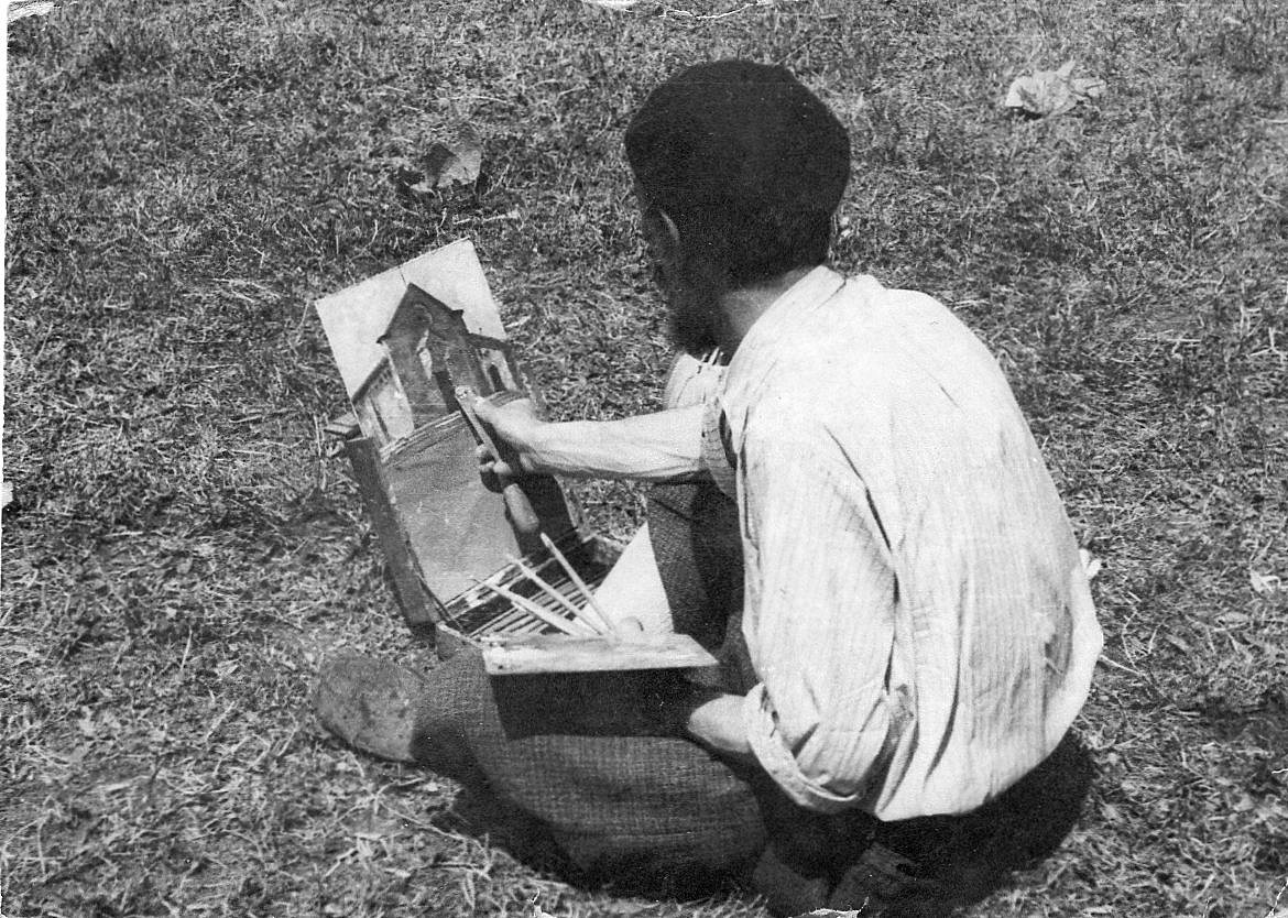 Un bellissimo ricordo. Era molto bravo tuo nonno, il dipinto che sta eseguendo si vede bene in questa foto. Mi piace anche il suo essere seduto in terra mentre esegue il suo dipinto e poi immaginarlo con il basco e la pipa. Una bella persona, si, io lo vedo così