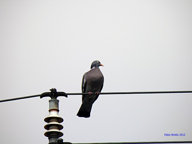 Rimasi stupito nel 1971, a Londra, vedendo colombacci a passeggio sull’erba nei parchi, senza alcun timore degli umani. Non ne avevo mai incontrati, nella campagna veneta. Da qualche anno alcuni gruppi di questi migratori sono divenuti stanziali, e dalle mie parti è abbastanza facile incontrarne. Anche vicino a casa mia. L’altro giorno ho potuto fotografarne uno da pochi metri di distanza, posato dentro le fronzutissime chiome del mio olmo. Sono uccelli molto eleganti: dorso azzurrognolo, petto color vinaccia, collare bianco e banda bianca sull’ala, che li rende facilmente riconoscibili. Se li confrontiamo coi piccioni cittadini, questi colombi selvatici ci appaiono come eleganti nobili di campagna ben distinti dalla plebe urbana.