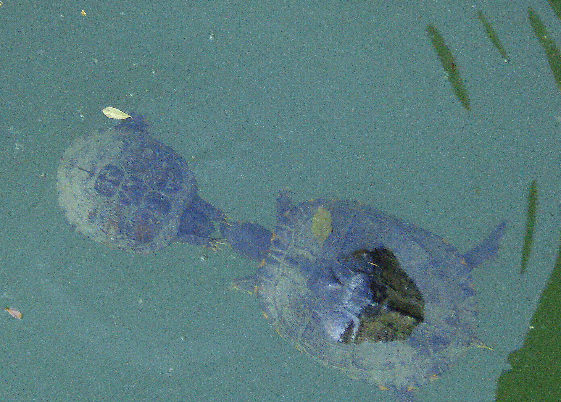 Sembra un incontro affettuoso tra due creature a sangue freddo, questo appena sotto la superficie. Risvegliano sempre in me ricordi della mia infanzia le tartarughe palustri. C’è un luogo, vicino a Treviso, in cui il Sile offre un habitat ideale a queste creature, le mie preferite tra tutte le specie di tartaruga. Passeggiando con Guido, però, ogni sosta è impossibile, lui da bravo autistico iperattivo deve procedere a ritmo sostenuto. Impossibile contemplare. Mi porto in tasca una macchinetta fotografica, e devo essere fortunato e fulmineo.